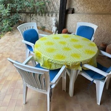 A large kitchen with all facilities and a dining area with doors out to the walled garden and Barbecue area, with a window overlooking the main square. The Kitchen is being re fitted